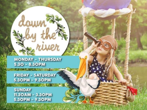 The kids’ club is suitable for kids aged between 3 – 12 years old with its rustic theme, chook-pen play area, heaps of toys, plus iPads for the older kids. Down By The River is fully supervised and available every night of the week, and during lunch on weekends.